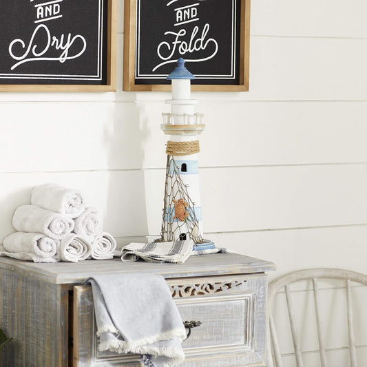 Coastal Wood Light House Sculpture, 6" X 6" X 16"