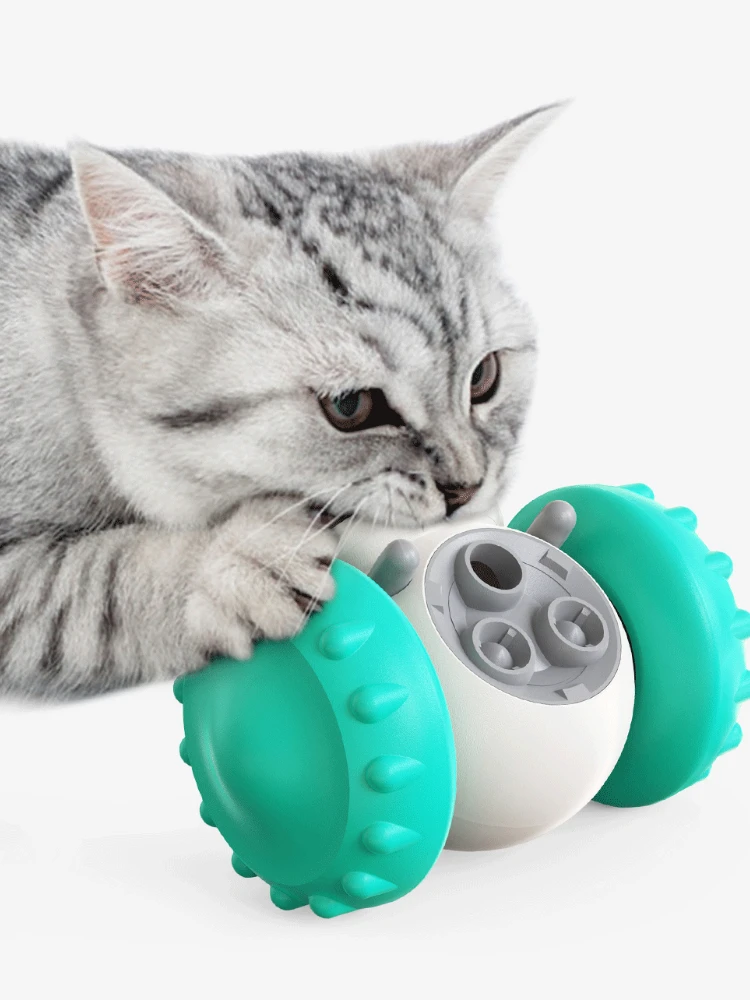 Meet our clever robot companion! It's not just any toy; it's a versatile puzzle solver, a playful tumbler, and a delightful pet feeder all rolled into one.